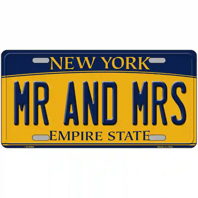 Mr and Mrs New York Yellow Metal Sign